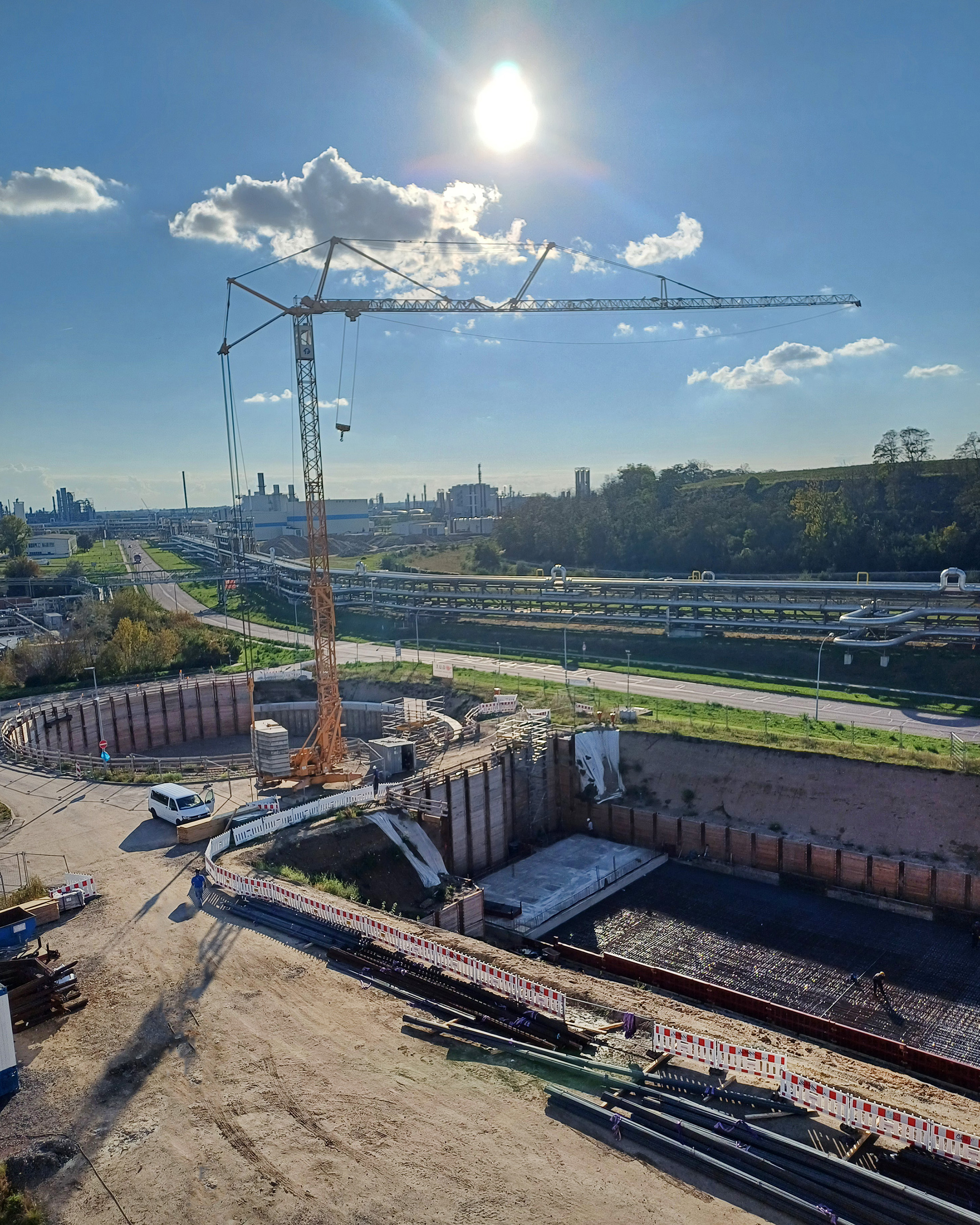 Baustelle des Erweiterungsbaus der Zentralen Abwasserbehandlungsanlage am Chemiestandort Leuna um eine dritte aerobe Abwasserbehandlungslinie – Bildquelle: InfraLeuna